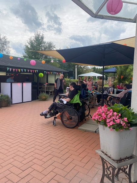 Im Jahr 2022 stand das Sommerfest unter dem Motto: „Alles fliegt und ist BUNT“. Im Vorwege haben die Bewohnerinnen und Bewohner in der Kunsttherapie gebastelt und gebatikt, um eine schöne Deko herzustellen. Mit einem Ballonkünstler wurde für jeden und jede eine individuelle Ballonkreation geschaffen. DJ Twister heizte zu rockigen Beats ordentlich ein. Eine Bewohnerin hatte einen wunderschönen Rollitanz mit der Musiktherapeutin einstudiert.